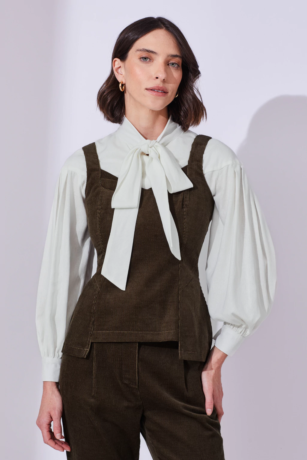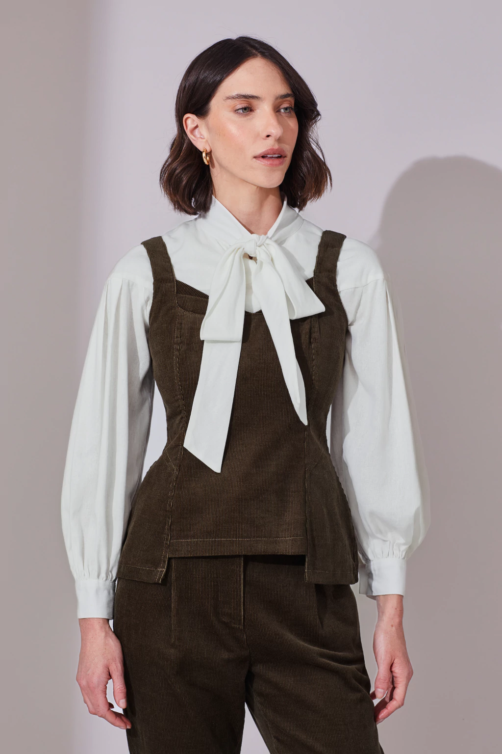 Blusa Velvet Mate - Verde Musgo, com um recorte lateral estratégico, esta peça valoriza a silhueta, criando um visual mais acinturado, além de possuir as laterais alongadas. Decote quadrado com detalhe inspirados nos elevados campos das coxilhas. As alças médias e o fechamento em zíper destacável garante praticidade para o look.