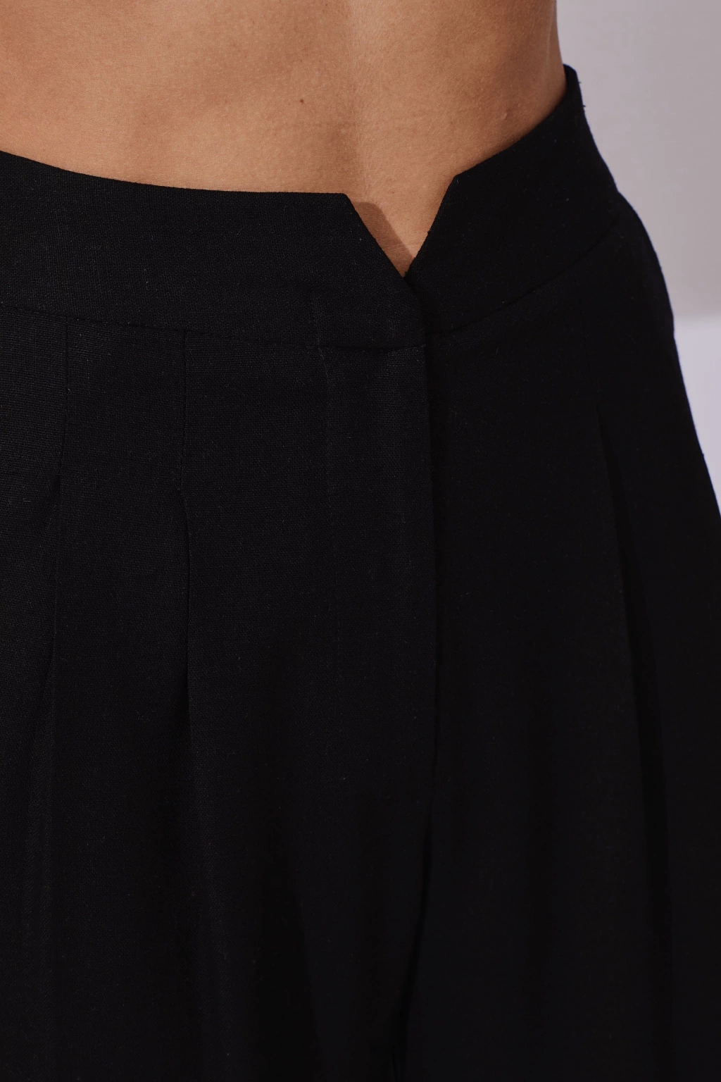 Um dos best-sellers da marca, a calça "V" voltou com zíper frontal na braguilha e colchete logo abaixo do detalhe no cós. Com perna ampla, e duas pregas em cada lado, possui passantes e cintura média, bolsos faca embutidos nas laterais.
