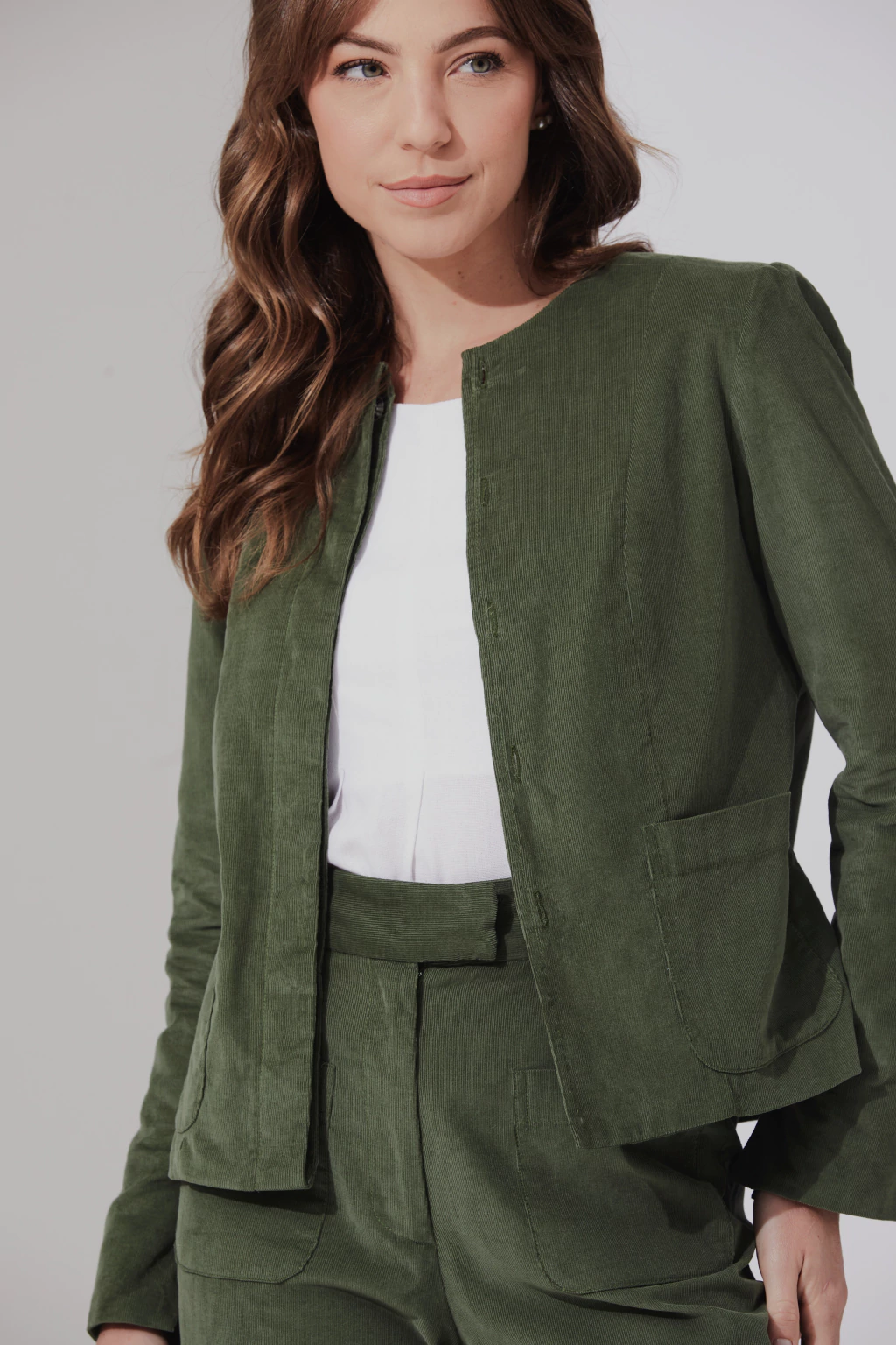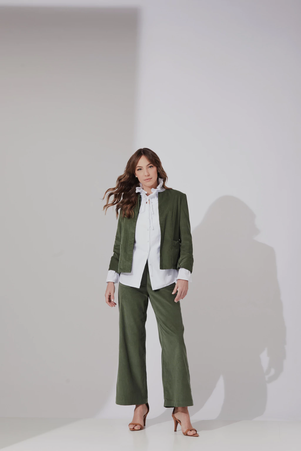 Ideal para compor um look refinado, o Casaco Velvet Grass combina perfeitamente com a Camisa Sixtie e a Calça Velvet Grass, criando um conjunto harmonioso que transita entre o casual e o chic. Para um toque extra de sofisticação, utilize a capa removível que acompanha o casaco, com botões forrados no tecido.