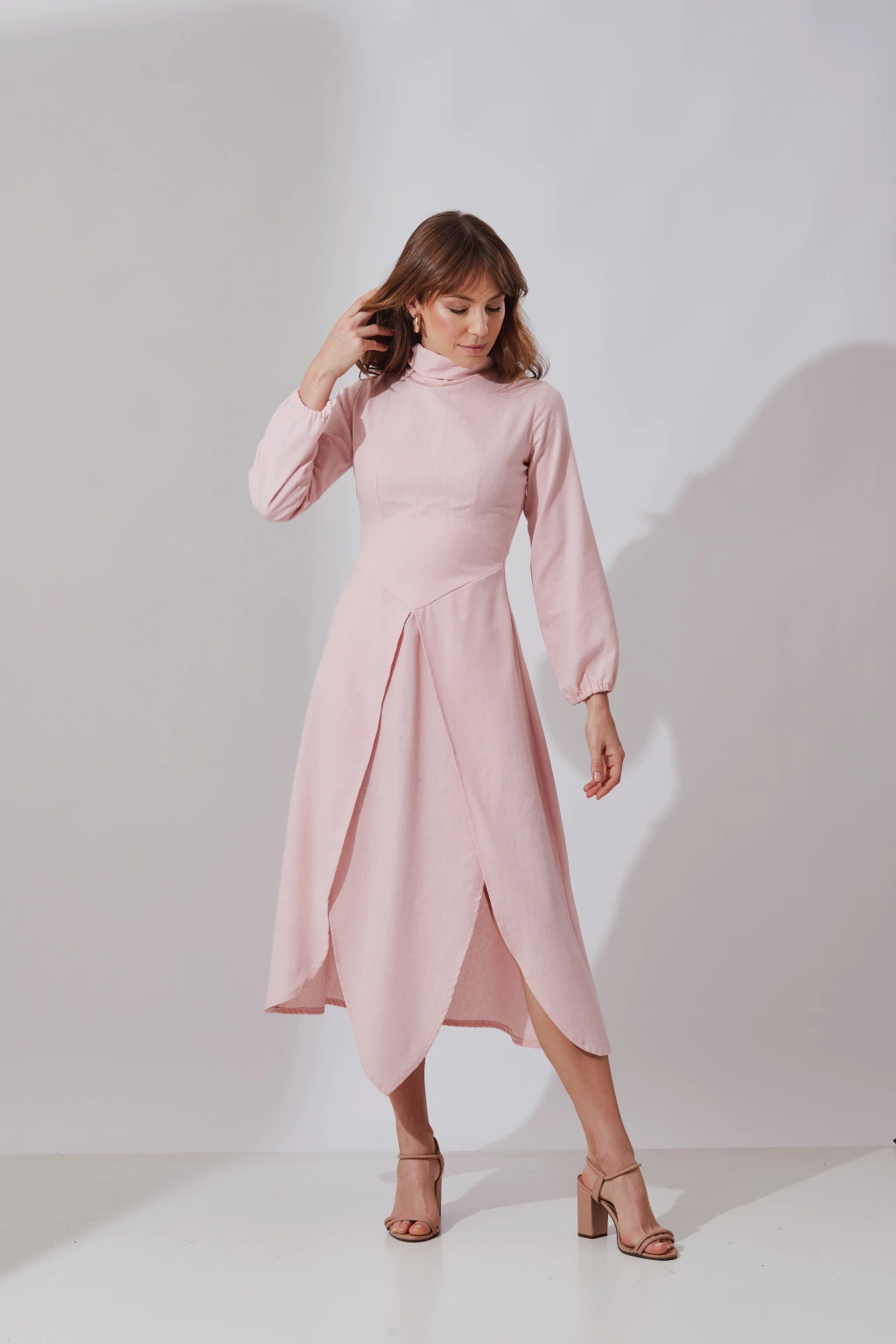 Com sandálias de tiras finas ou botas.